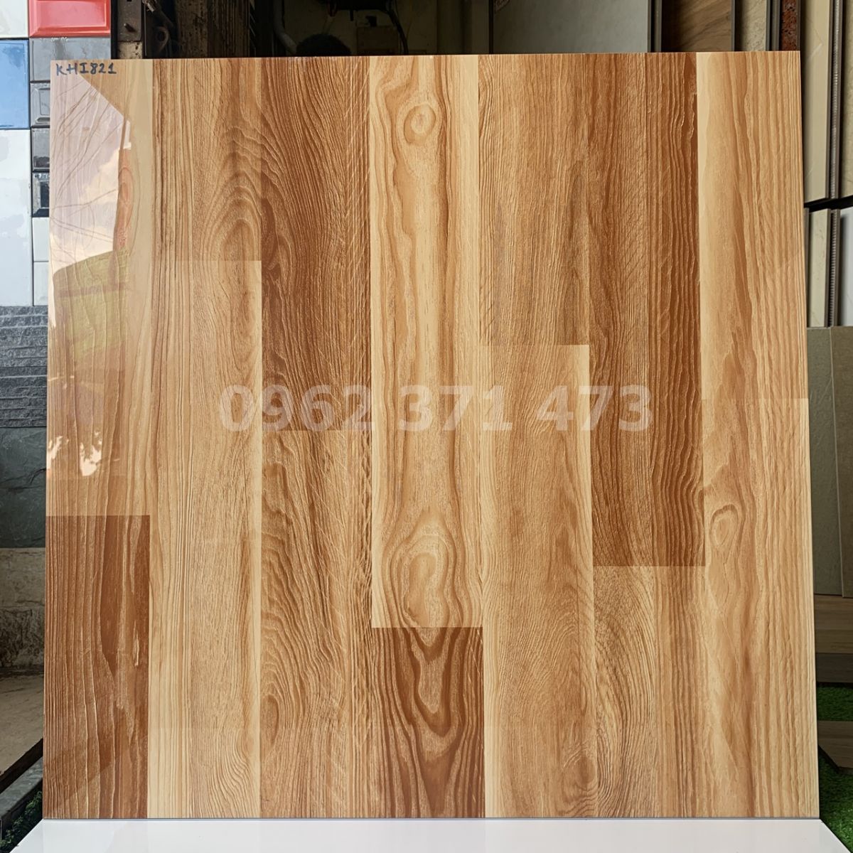 Gạch giả gỗ lát nền 80x80 siêu bóng KHI821