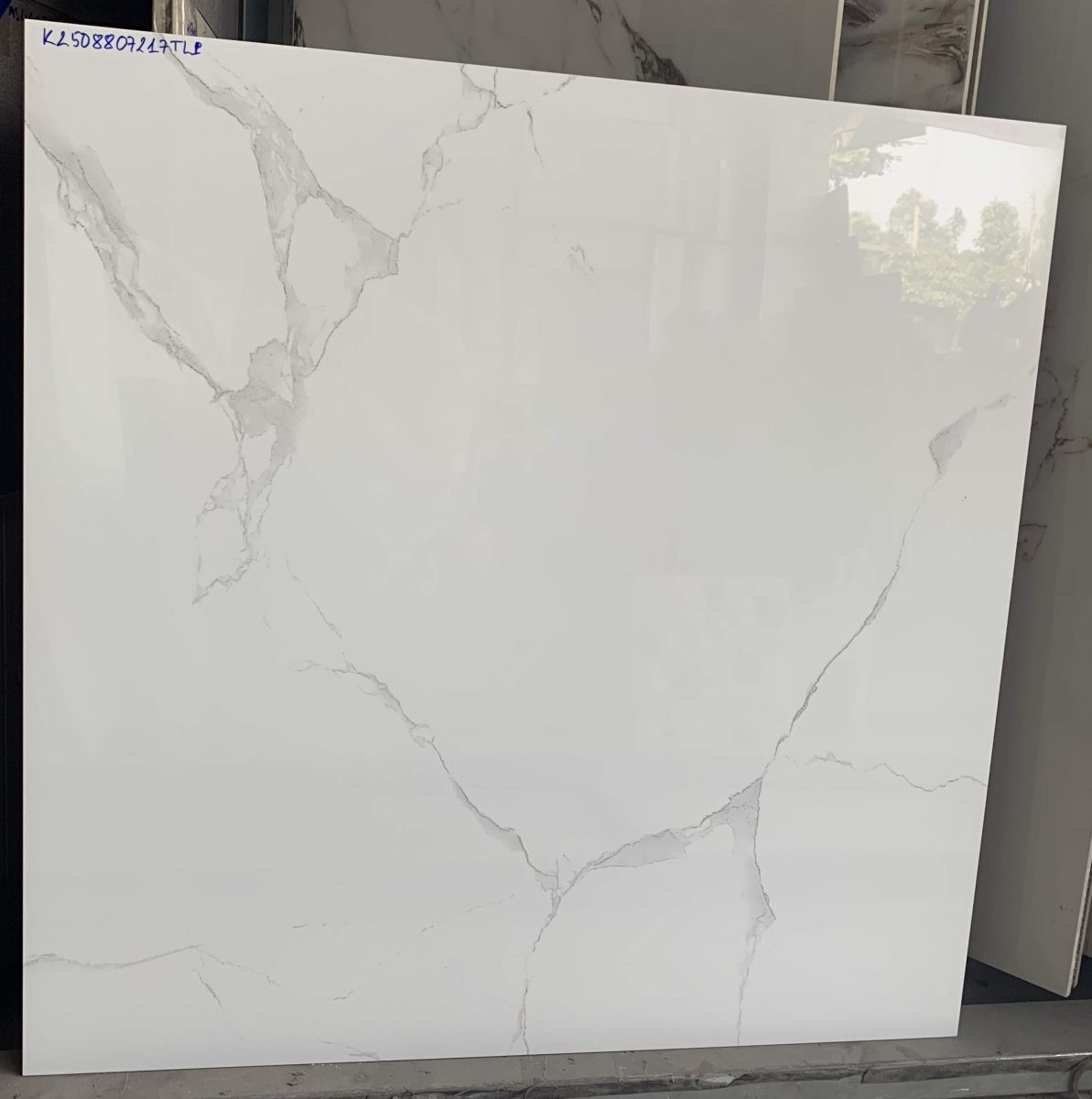 Gạch đá bóng kiếng 80x80 trắng vân khói