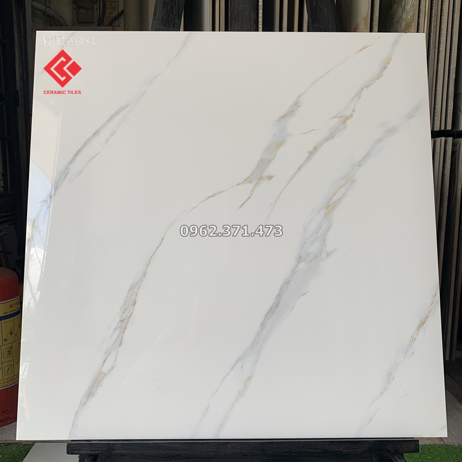 Gạch trắng khói 600x600 vân mây vàng