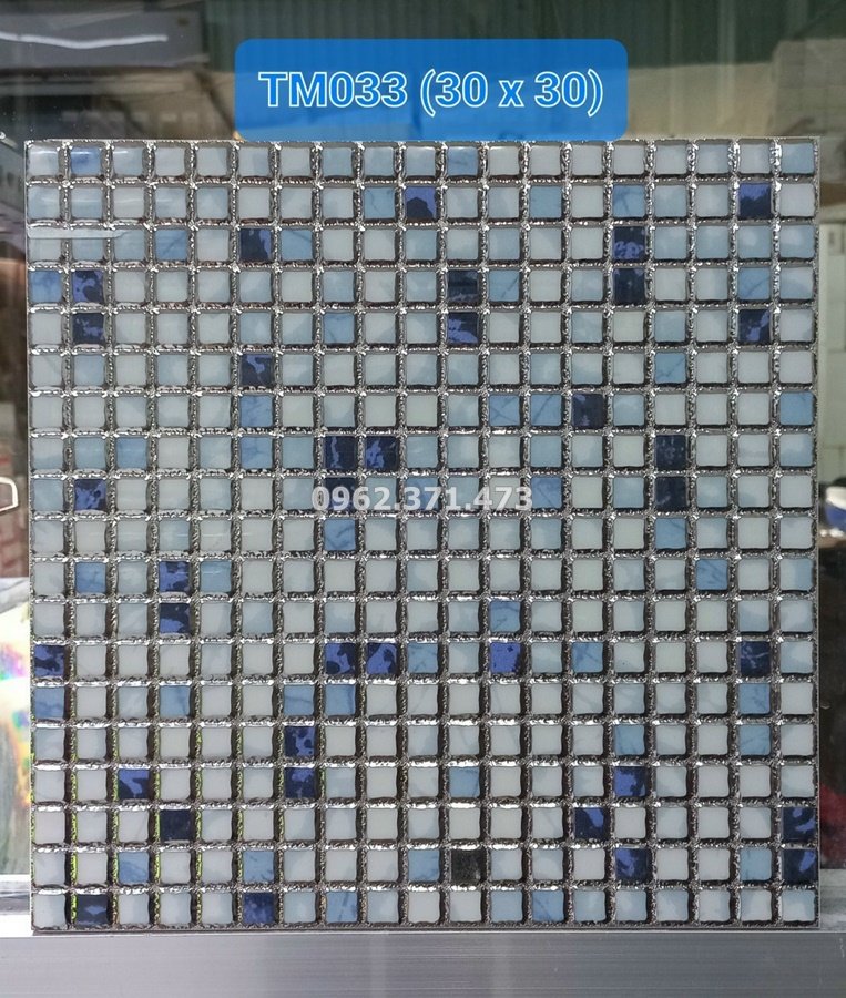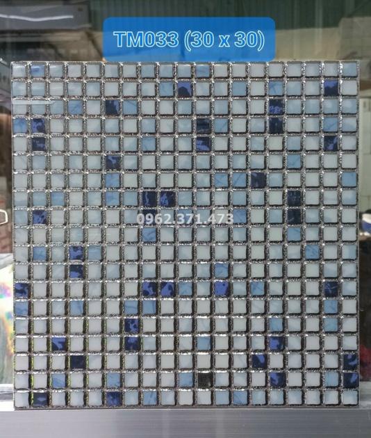 Gạch nhũ bạc sọc caro xanh 30x30 TM033