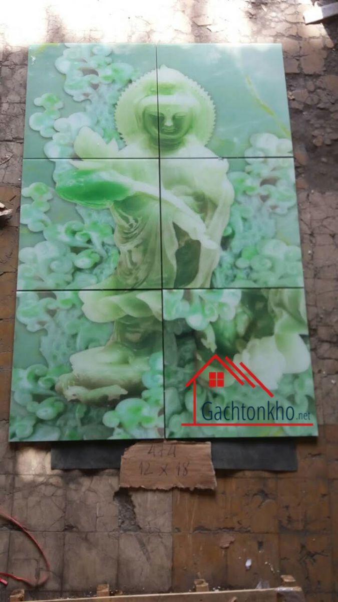 Gạch tranh 3d tượng phật xanh ngọc thạch - gạch tranh phong thủy