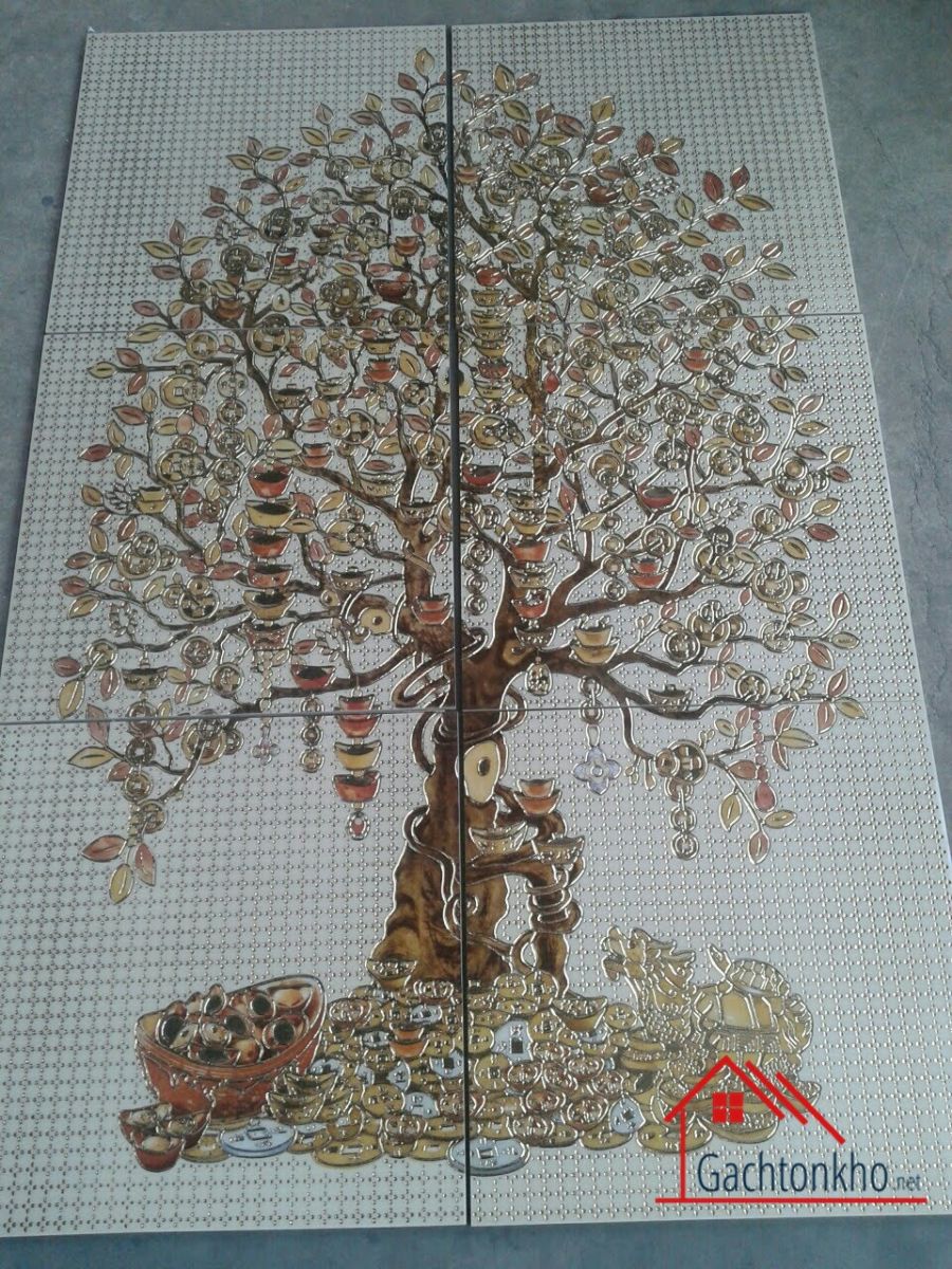 Gạch tranh phong thủy cây tài lộc